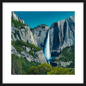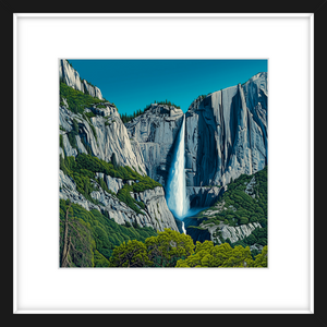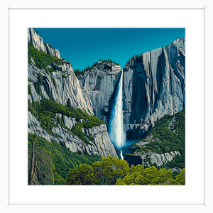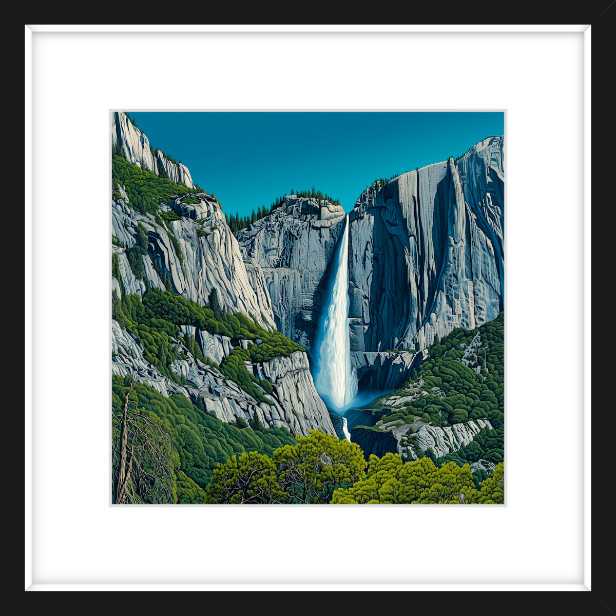 This art print of Yosemite Falls is available as 400x400mm art print, 600x600mm art print and 800x800mm art print. You may also choose to take the hassle out of framing and order it framed, in either black, white or natural.